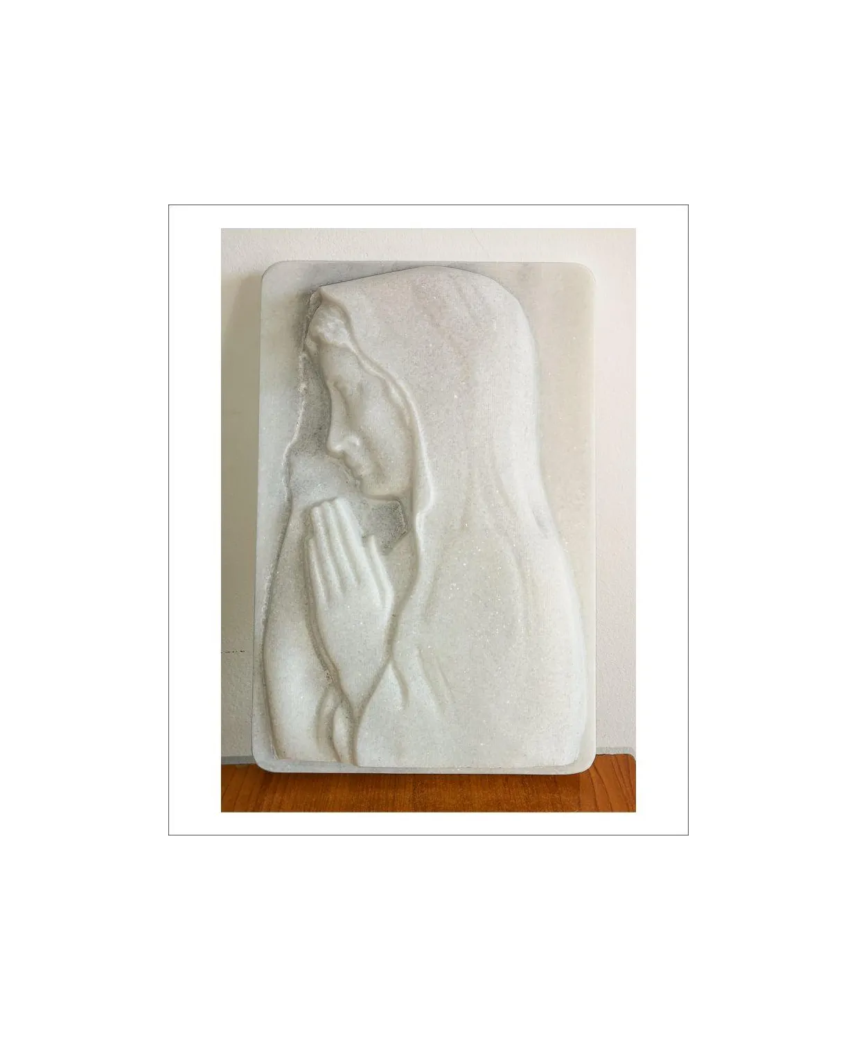 Medalion din marmura cu dimensiunea de 20 x 20 x 2 CM. Produsul este realizat integral pe masina cu comanda numerica ( CNC ).