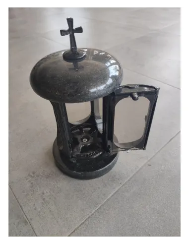 Acest felinar deosebit măsoară 28x15x15 cm, oferind suficient spațiu pentru a găzdui o lumânare funerară în interiorul său. Poziționat pe mormânt sau în apropierea locului de înmormântare, acest felinar va ilumina discret zona și va aduce un sentiment de liniște și respect. Este un mod minunat de a onora memorie celor dragi și de a le aduce un omagiu în timpul ceremoniilor funerare.
