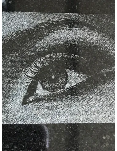 Fotogravura este posibila, in general, pe granitul negru, de asemenea la cerere se poate executa fotogravura inclusiv pe geam sau alte materiale din granit inchise la culoare.