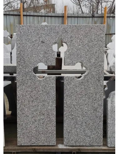 Crucea este sculptată din blocuri de granit Rosa Beta, proveniență Italia. Oferă spaţiu generos pentru inscripţionarea mesajelor ce însoţesc somnul veşnic.