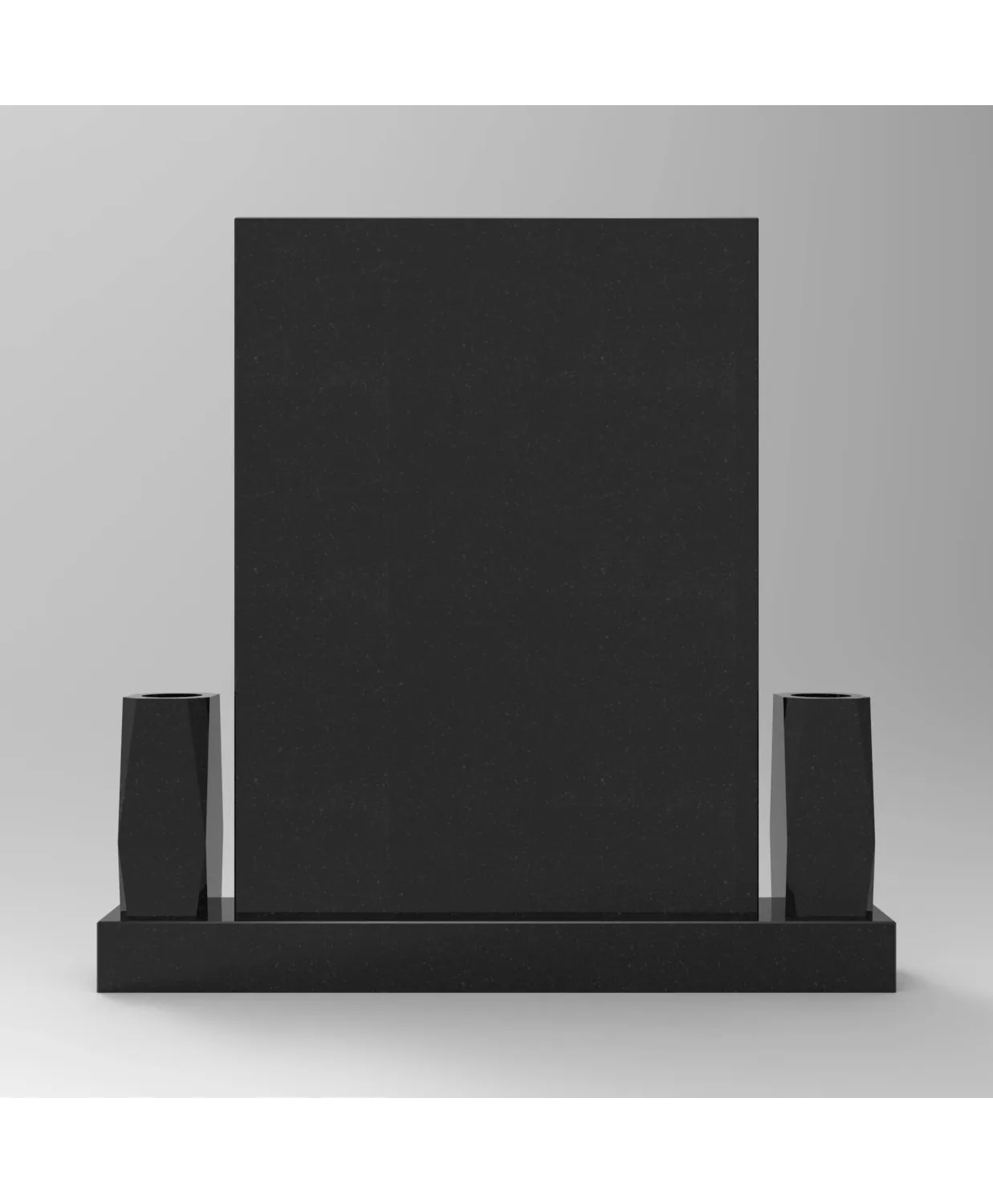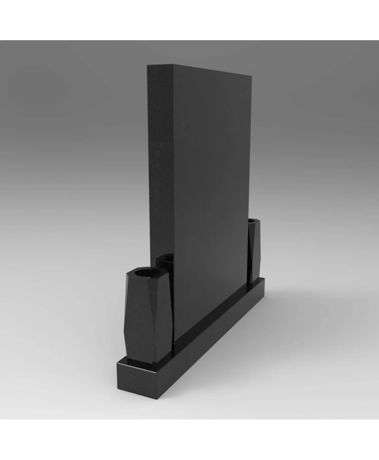 Monument din granit model G116. Dimensiuni: 90 x 70 x 8 CM (crucea), 100x 13 x 8 CM (baza), 10 x 10 x 25 CM (vaza).