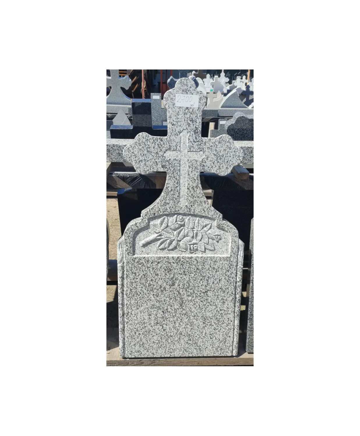 Monumentul funerar poate fi personalizat din moment ce depozitul de cruci are experiență vastă în prelucrarea pietrei naturale şi sculptarea diferitor obiecte simbolistice așa cum sunt în cazul de față trandafirii.