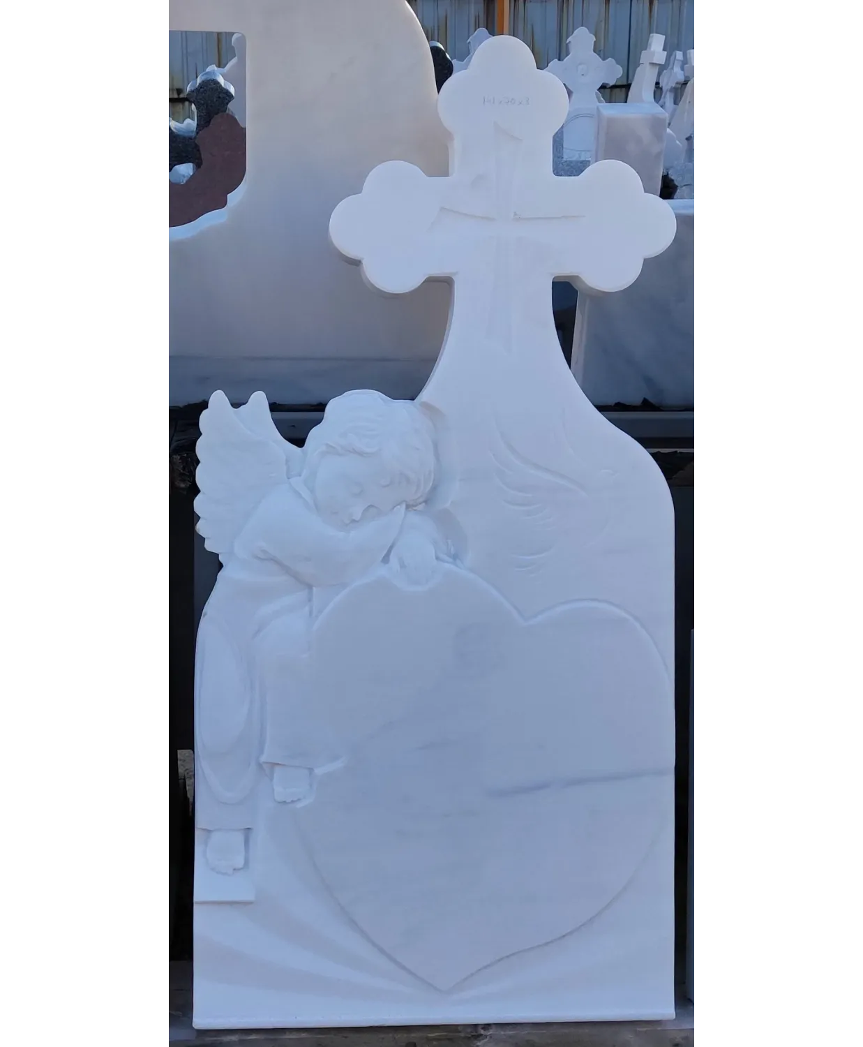 Cu mândrie vă prezentăm crucea noastră realizată din marmură, un material nobil care conferă produsului final un aspect luxos și rafinat. Fabricată cu atenție la fiecare detaliu, această cruce impresionează prin finisajele deosebite, subliniindu-și frumusețea și durabilitatea. Marmura este cunoscută pentru rezistența sa în timp, asigurând că amintirea persoanelor dragi rămâne înălțată și neștirbită de trecerea anilor.