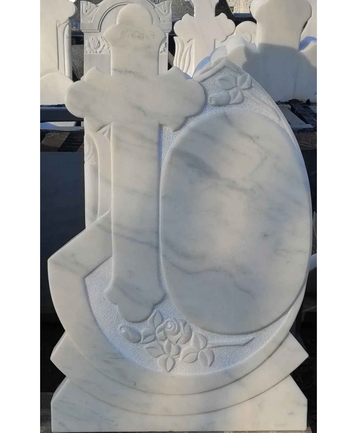 Cu mândrie vă prezentăm crucea noastră realizată din marmură, un material nobil care conferă produsului final un aspect luxos și rafinat. Fabricată cu atenție la fiecare detaliu, această cruce impresionează prin finisajele deosebite, subliniindu-și frumusețea și durabilitatea. Marmura este cunoscută pentru rezistența sa în timp, asigurând că amintirea persoanelor dragi rămâne înălțată și neștirbită de trecerea anilor.