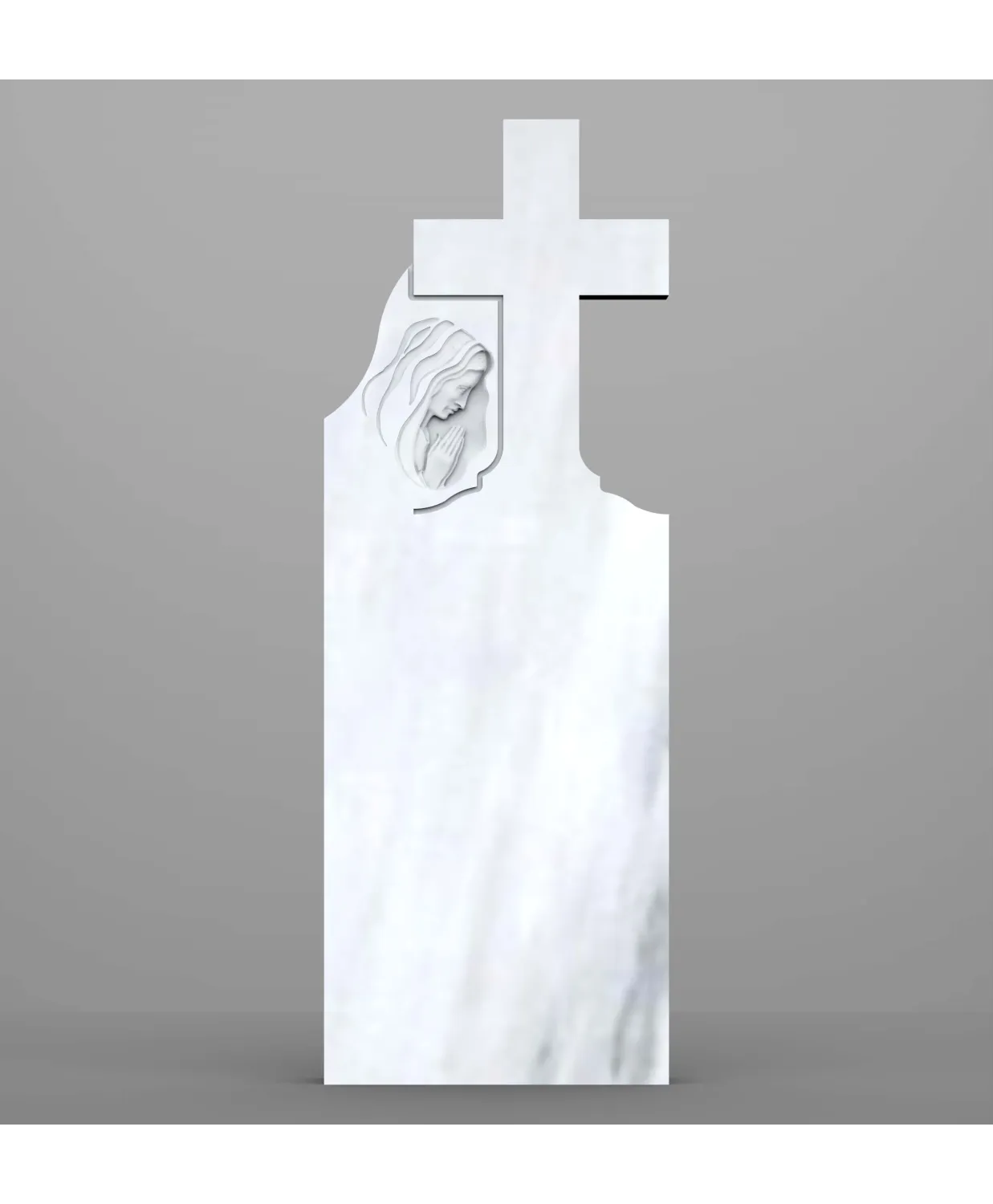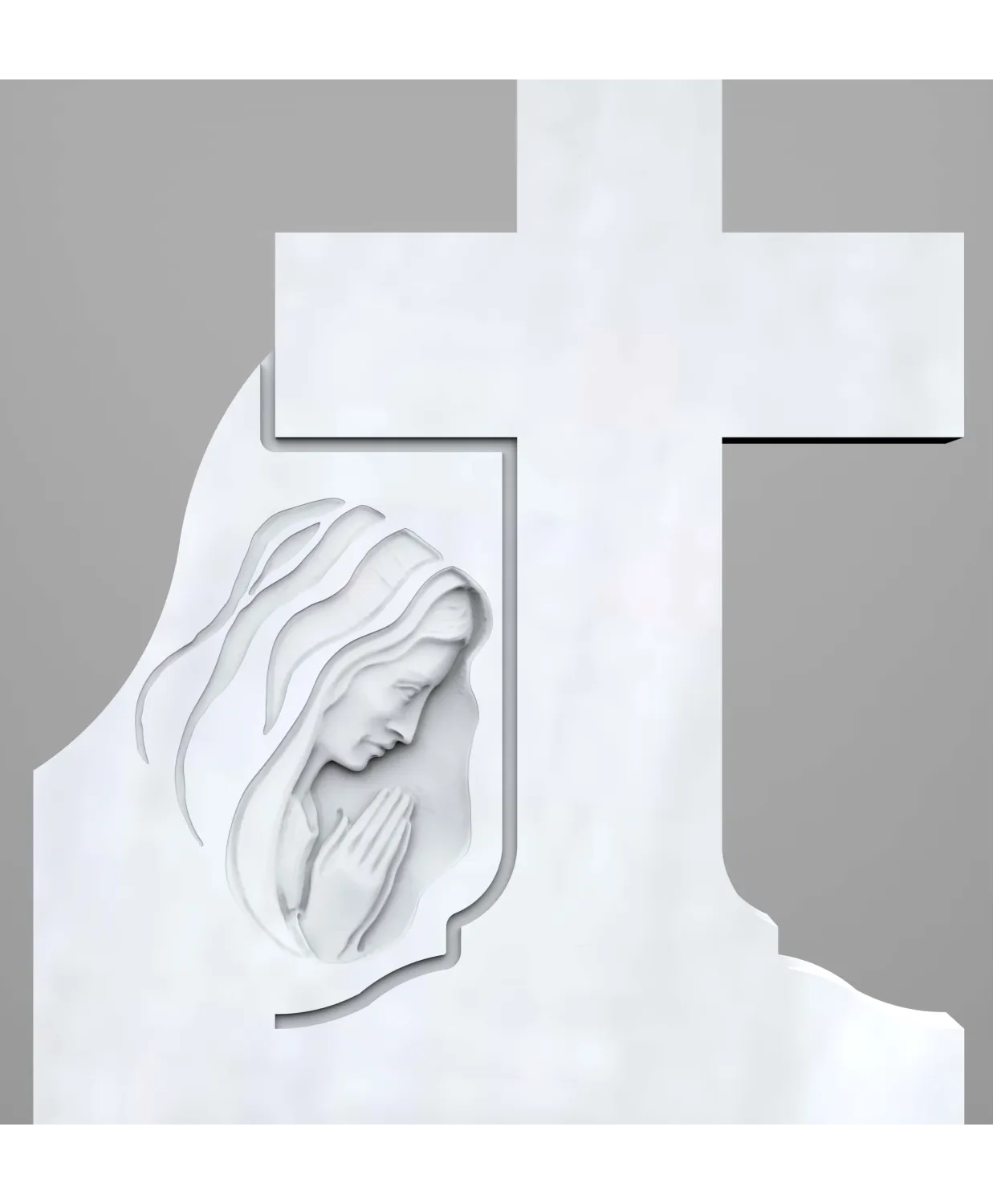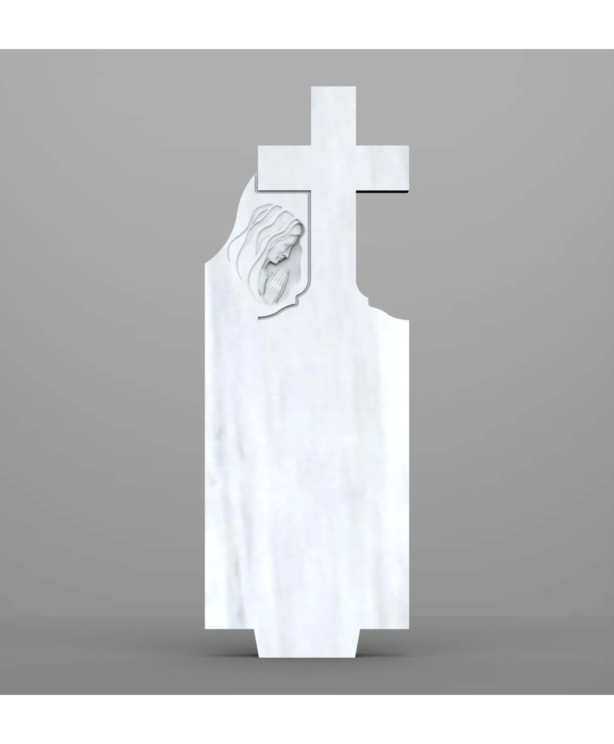 Modelul de monument funerar M3000 propus de magazinul Depozitul de cruci realizat din marmură de înaltă calitate cu design simplu şi rezistență ridicată este opțiunea pentru crearea unui loc de comemorare liniştit. Ansamblul monument funerar M3000 este compus în partea superioară din cruce simplă și corp ce permite inscripţionarea mesajelor de adio sau a citatelor reprezentative pentru defunct. În partea dreaptă a monumentului, se evidenţiază un basorelief simplist o ce prezintă pe Fecioara Maria cu mâinile împreunate în poziție de rugăciune. Detaliile realist realizate sunt inspirate, transmiţând liniște şi pace. Tăieturile ample, realizate în marmură cu multă precizie sunt detalii care sporesc frumusețea întregului monument.