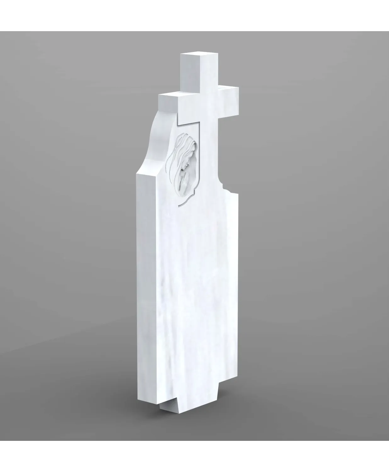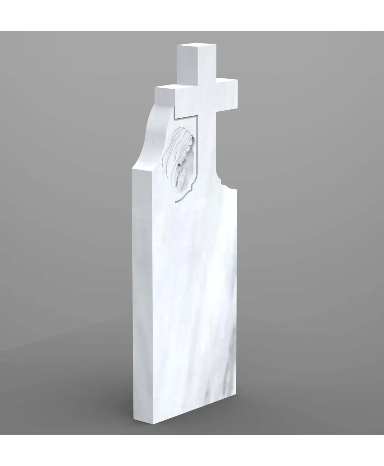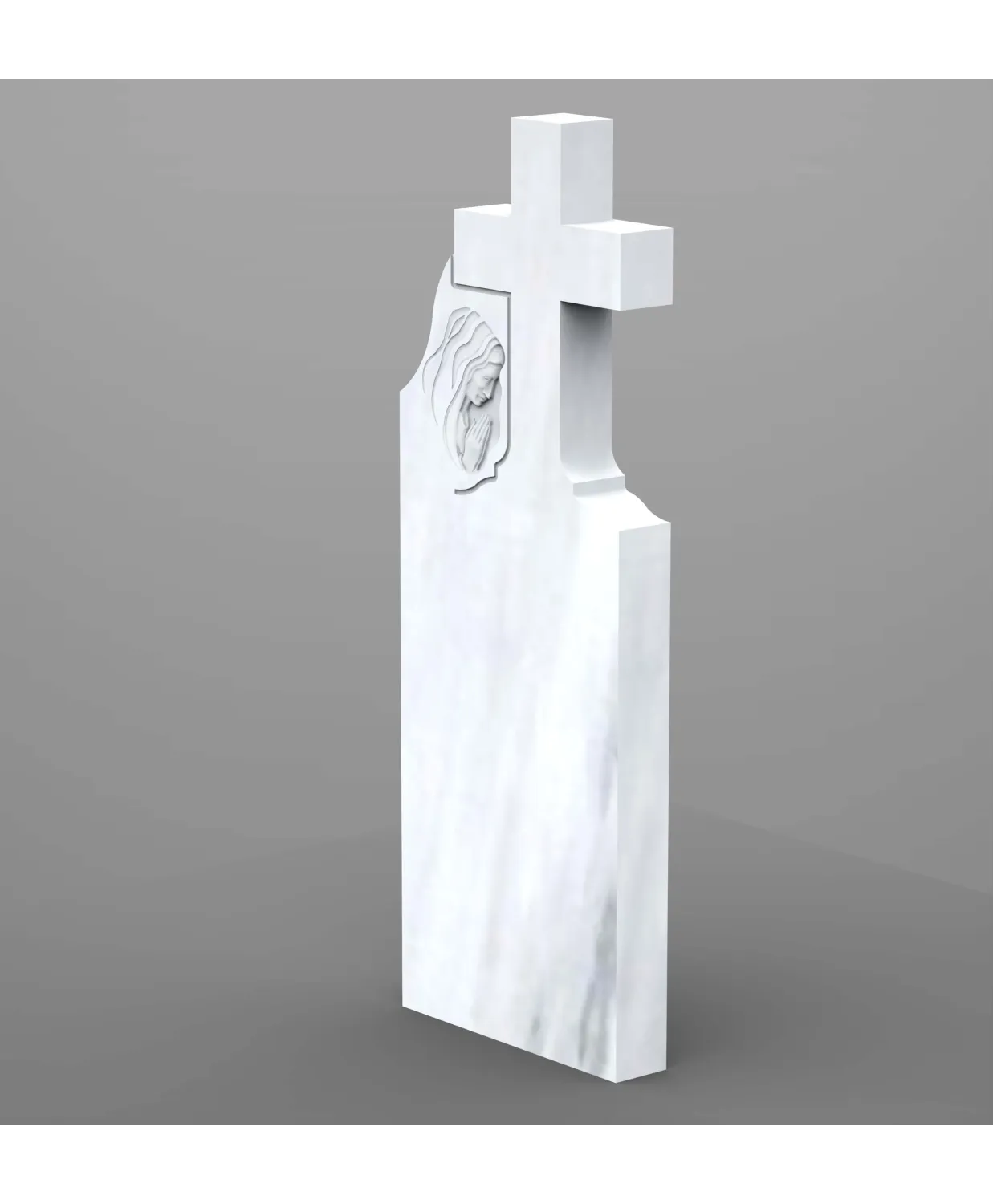 Modelul de monument funerar M3000 propus de magazinul Depozitul de cruci realizat din marmură de înaltă calitate cu design simplu şi rezistență ridicată este opțiunea pentru crearea unui loc de comemorare liniştit. Ansamblul monument funerar M3000 este compus în partea superioară din cruce simplă și corp ce permite inscripţionarea mesajelor de adio sau a citatelor reprezentative pentru defunct. În partea dreaptă a monumentului, se evidenţiază un basorelief simplist o ce prezintă pe Fecioara Maria cu mâinile împreunate în poziție de rugăciune. Detaliile realist realizate sunt inspirate, transmiţând liniște şi pace. Tăieturile ample, realizate în marmură cu multă precizie sunt detalii care sporesc frumusețea întregului monument.