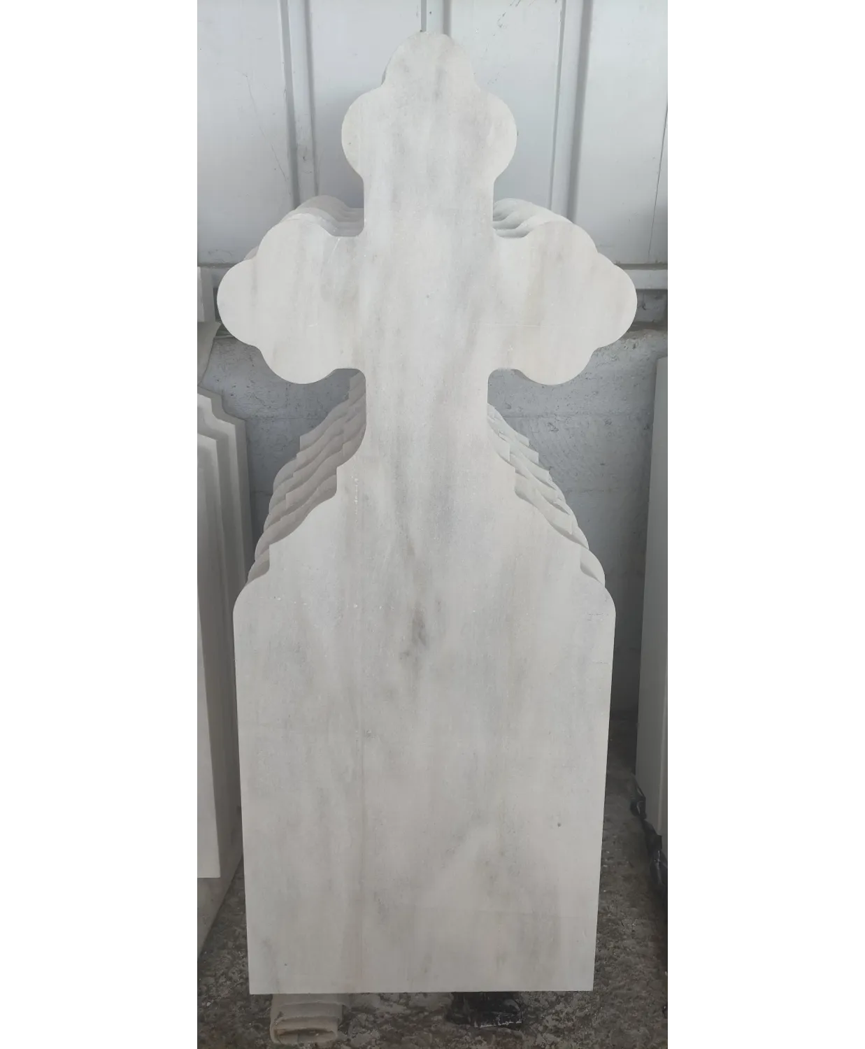 Monument funerar din marmura model M9000, realizat din marmura Kavala, culoare alb-gri, model fara ornamente.