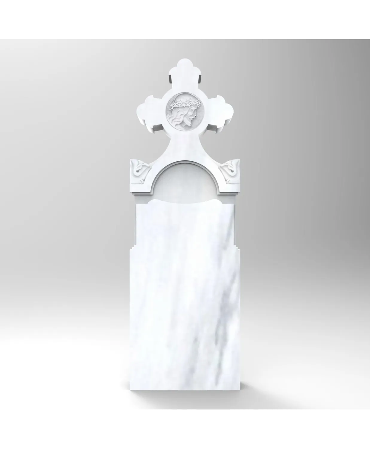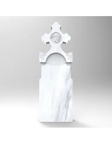 Un monument funerar din marmură este de o frumusețe rară, care nu va trece neobservat. Monumentul funerar cruce M1007 are culoarea alb-gri și este confecționat din marmură de înaltă calitate. Acesta poate avea dimensiuni variate, în dependență de lățimea, lungimea și grosimea solicitată de client. În România unul dintre cele mai des folosite material pentru elaborarea monumentelor funerare este marmura. Marmura este atât de apreciată pentru frumusețea și duritatea sa, dar și din motiv că avem în România propria carieră de marmură. Ca decorațiuni, se evidențiază prin doi umeri și o sculptură în mijlocul crucii, ceea ce este foarte simbolistic. Acestea se prelungesc în două lezene care subțiază vizual monumentul și îl fac să se încadreze perfect în peisaj.