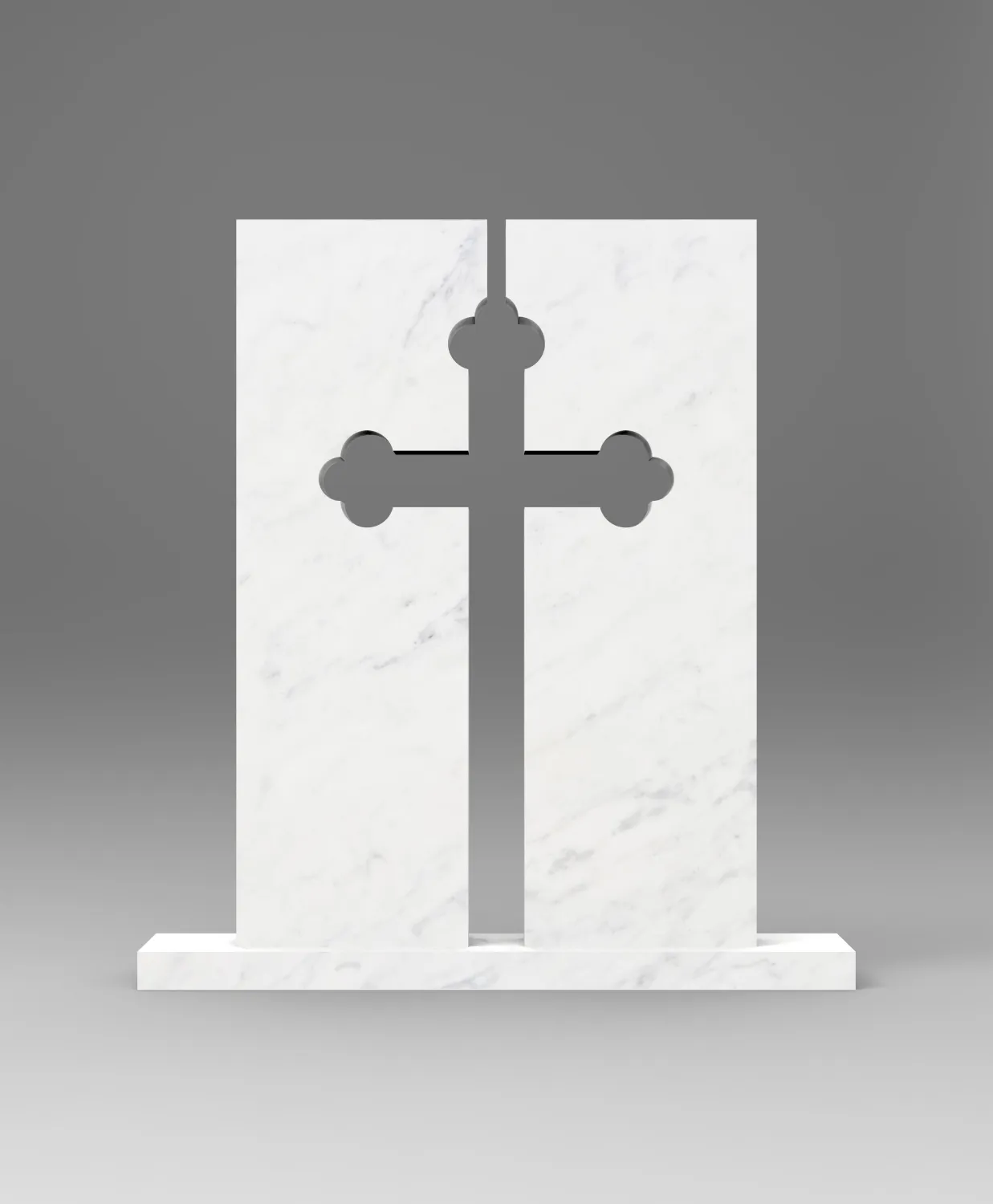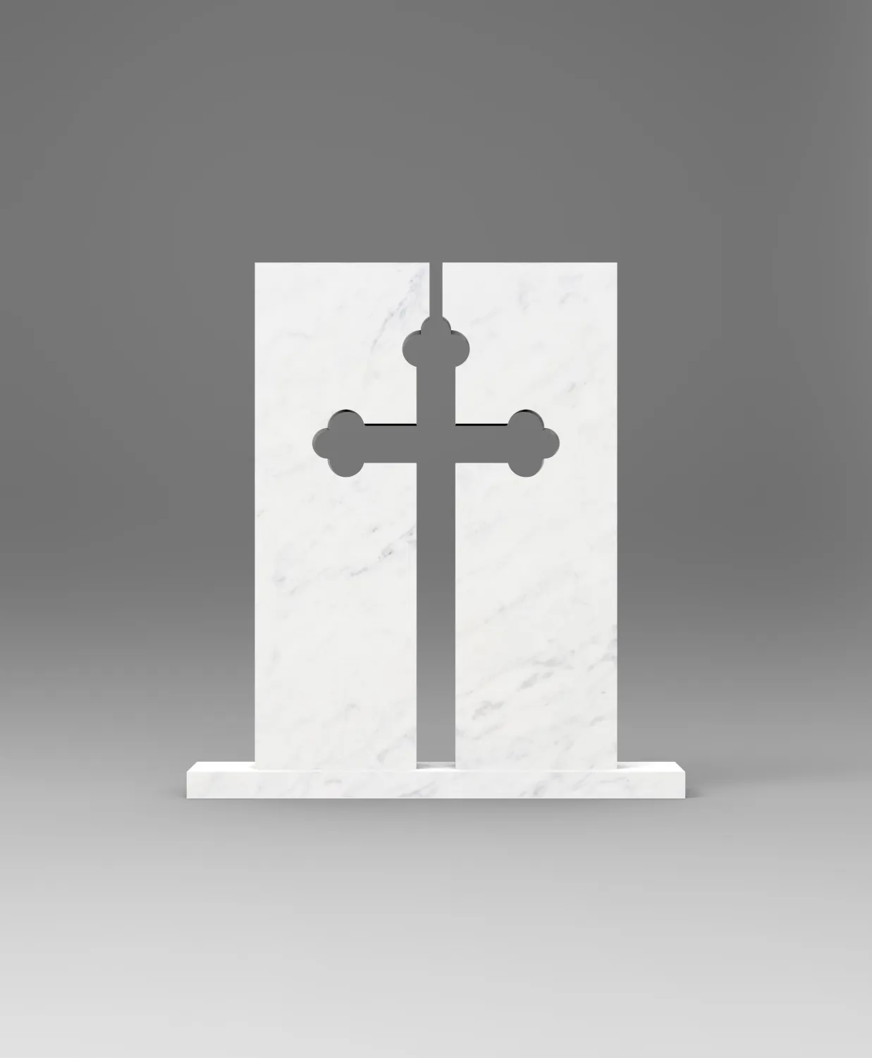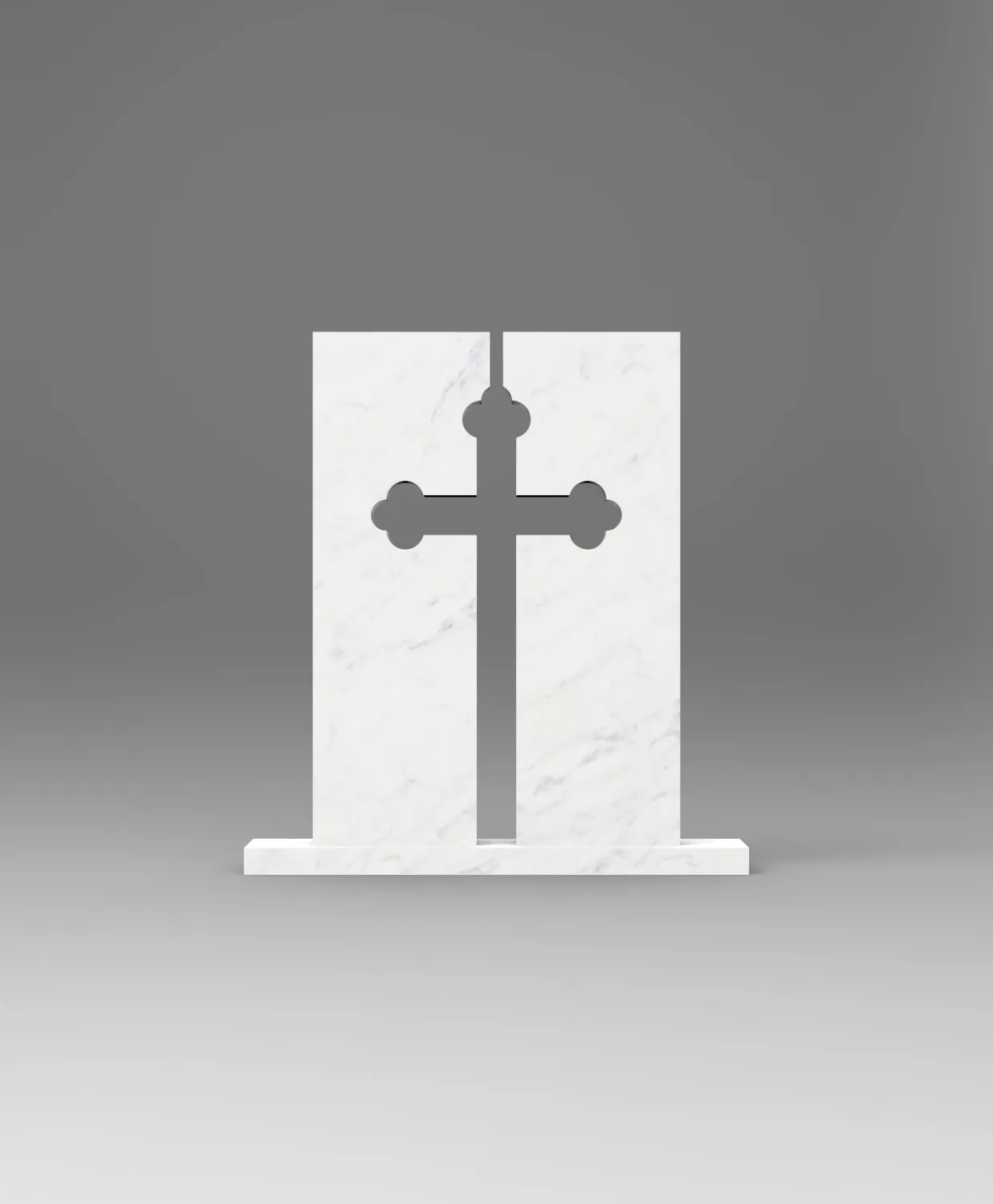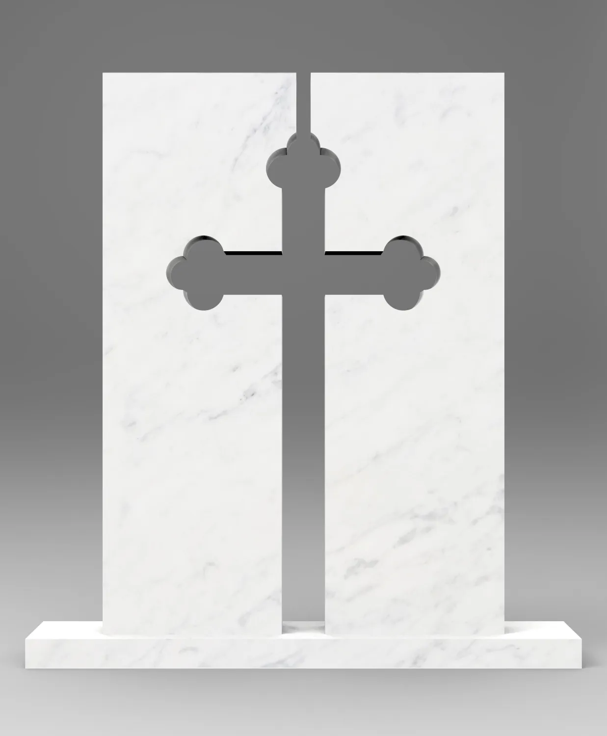 Descoperă eleganța și frumusețea marmurei alb-gri în noul nostru monument funerar M11030. Ești în căutarea unei opere de artă funerară impresionante, cu linii fine și detalii rafinate? Ai găsit ceea ce căutai! Alege dimensiunile potrivite pentru mormântul tău și creează un omagiu deosebit pentru cei dragi plecați în eternitate. Monumentul funerar M11030 este confecționat din marmură de cea mai înaltă calitate, garantându-ți rezistență în timp și aspect impecabil pentru mulți ani de acum înainte. Cu un stilobat solid și un postament elegant, acest monument este alegerea perfectă pentru a adăuga un aspect solemn și rafinat în cadrul cimitirului.