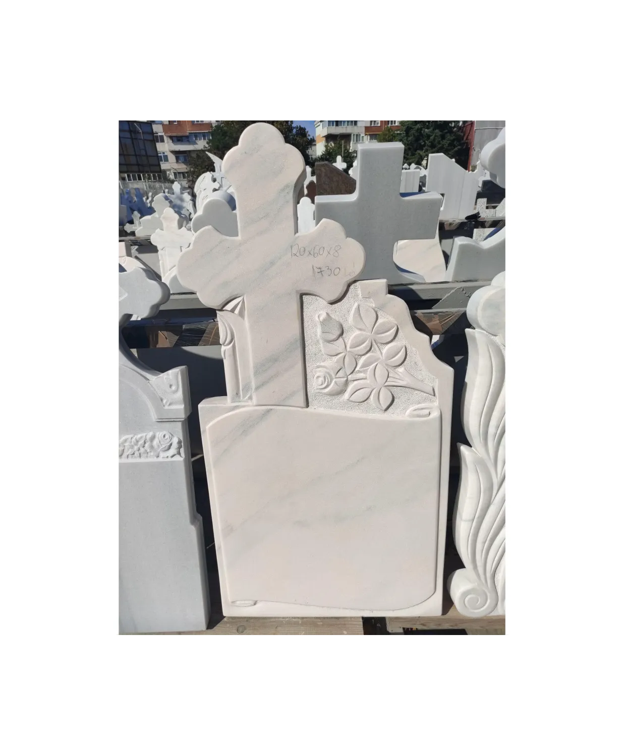 Cu mândrie vă prezentăm crucea noastră realizată din marmură, un material nobil care conferă produsului final un aspect luxos și rafinat. Fabricată cu atenție la fiecare detaliu, această cruce impresionează prin finisajele deosebite, subliniindu-și frumusețea și durabilitatea. Marmura este cunoscută pentru rezistența sa în timp, asigurând că amintirea persoanelor dragi rămâne înălțată și neștirbită de trecerea anilor.
