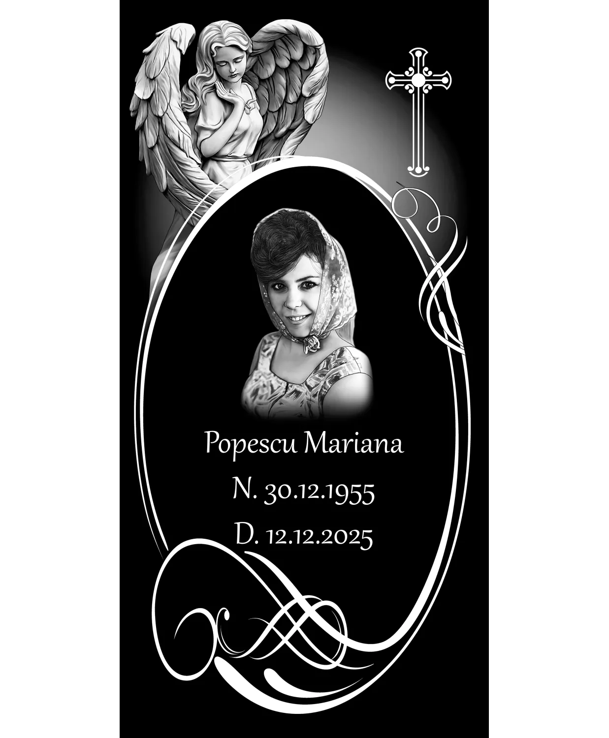 Placă comemorativa inscripționată și cu fotogravură adăugată, placa este pentru o singură persoană.Pentru clienții pretențiosi exista si varianta premium, unde editarea pozei se va face de catre un artist profesionist care va putea scoate si mai mult in evidență chipul persoanei dragi.