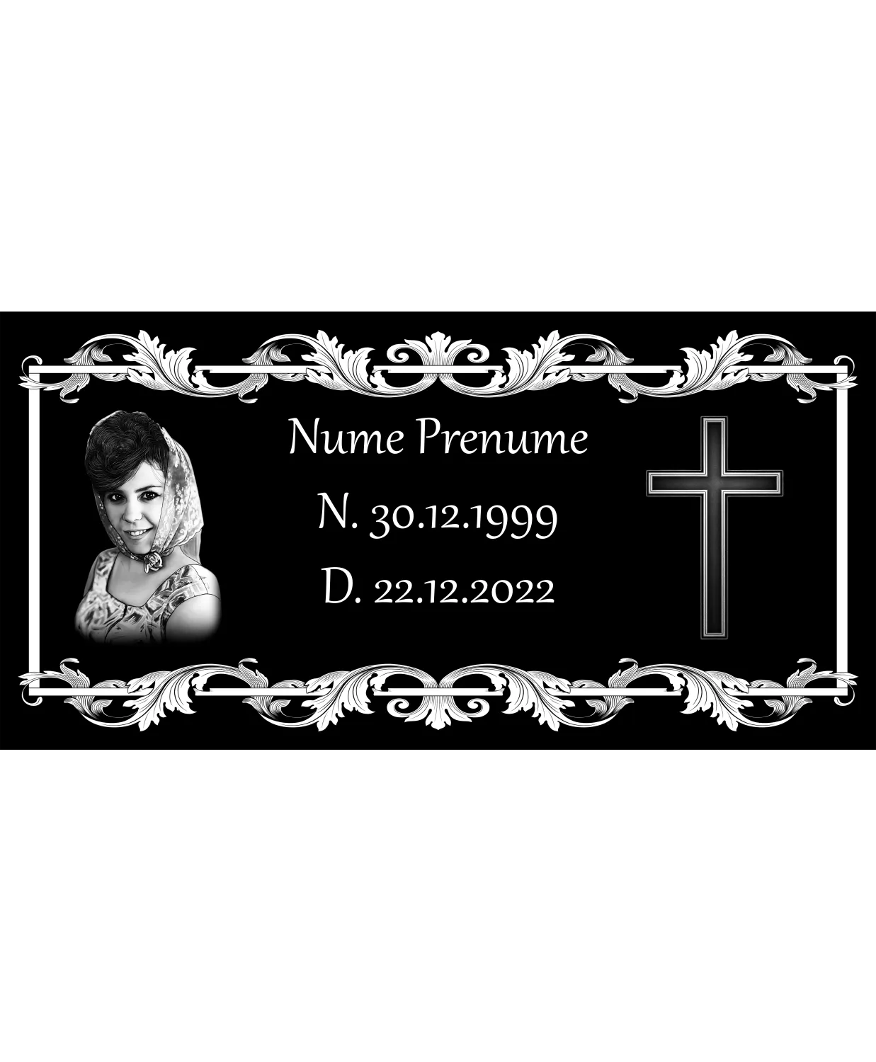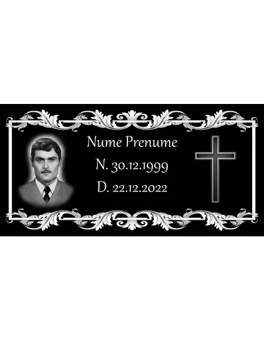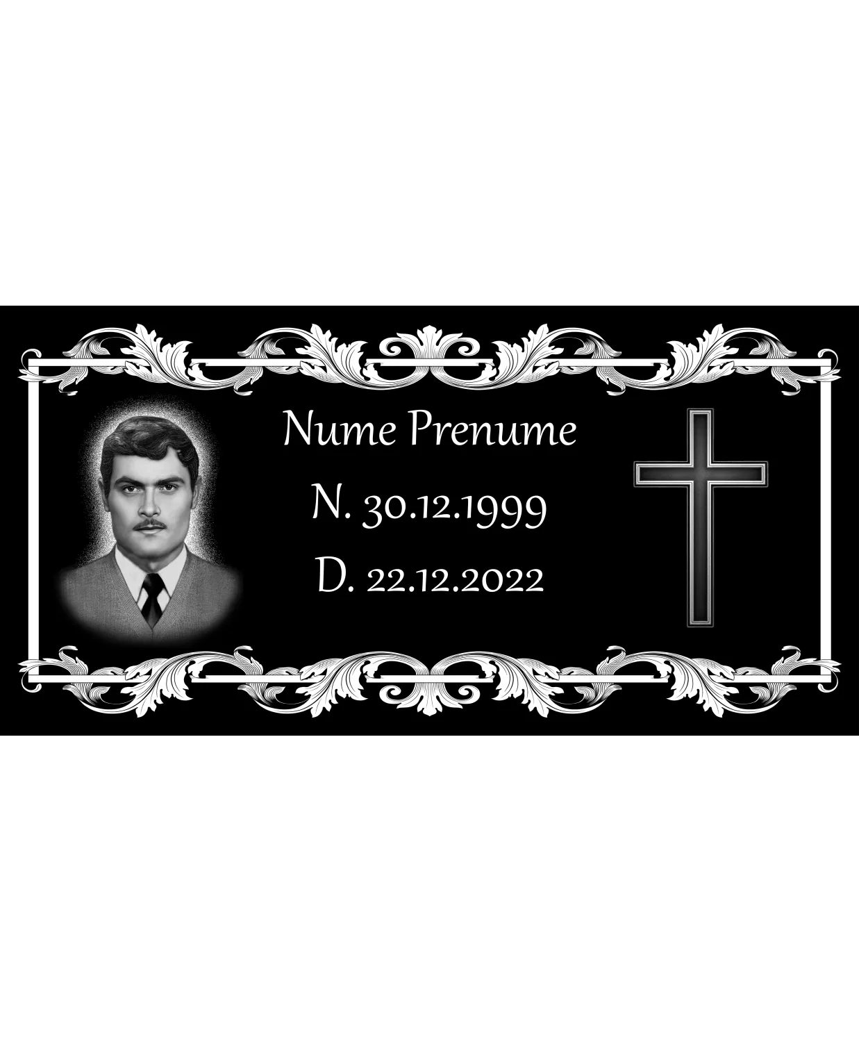 Placă comemorativa inscripționată și cu fotogravură adăugată, placa este pentru o singură persoană.Pentru clienții pretențiosi exista si varianta premium, unde editarea pozei se va face de catre un artist profesionist care va putea scoate si mai mult in evidență chipul persoanei dragi.