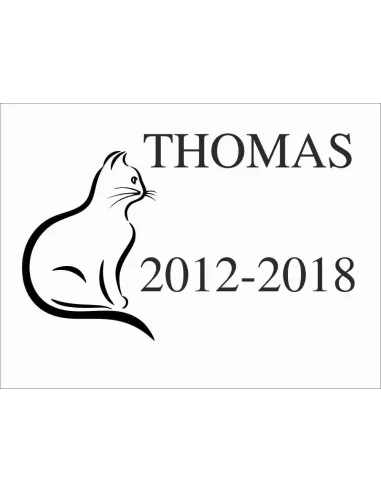 Trecerea în eternitatea pisicii este un moment trist, dureros, însă sentimentele intense de goliciune sufletească pot fi atenuate prin amenajarea mormântului, un loc ce va fi întotdeauna unul special. Pe placă comemorativă pentru animal de companie - pisică PCM6 cu dimensiune 30x40x2 cm realizată din marmură poate fi gravat numele animalului, data naşterii, a decesului dar şi mesaje de adio înduioşătoare.
