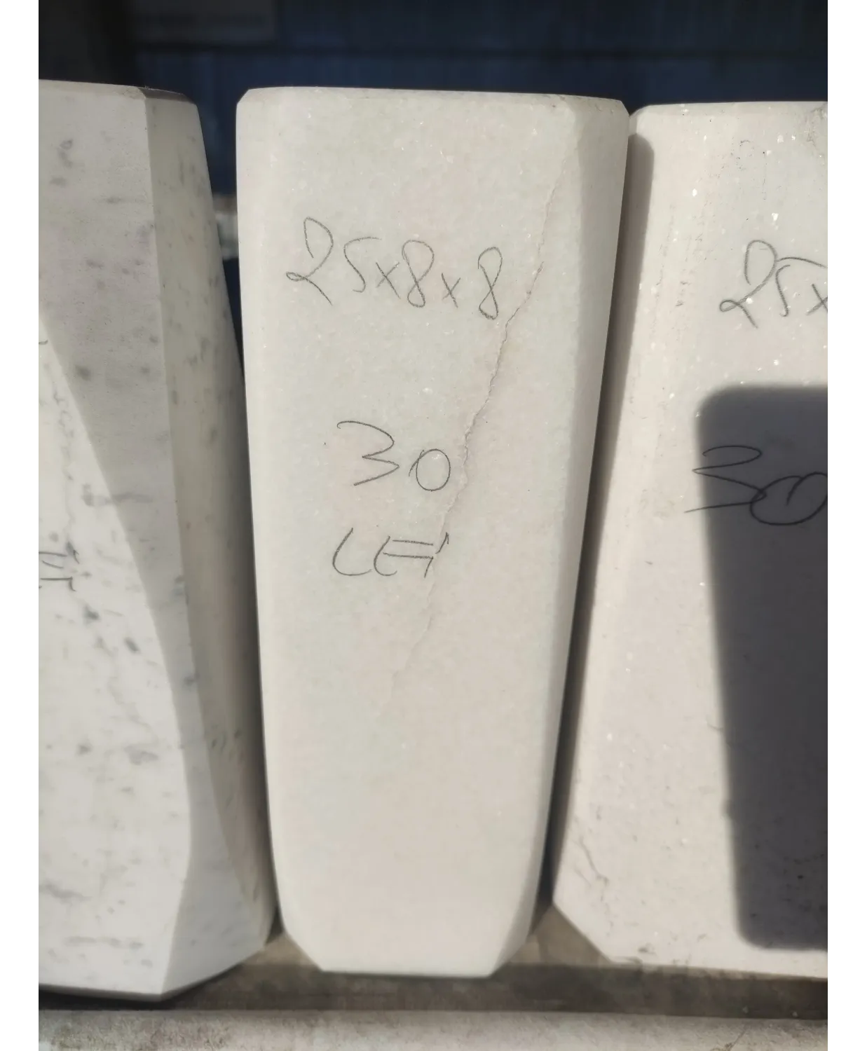 Vaza din marmura model VM2, realizata din marmura alb-gri de Grecia.